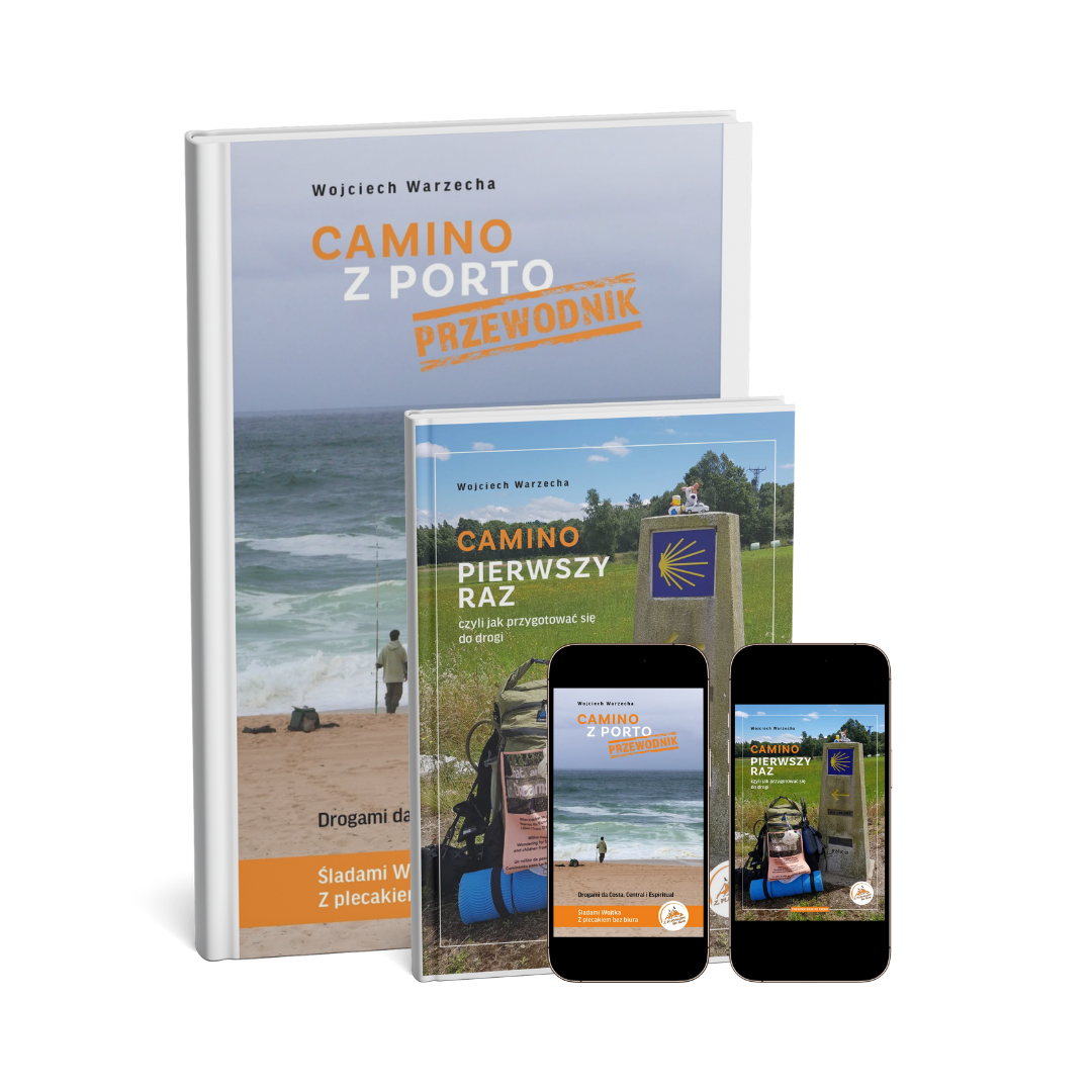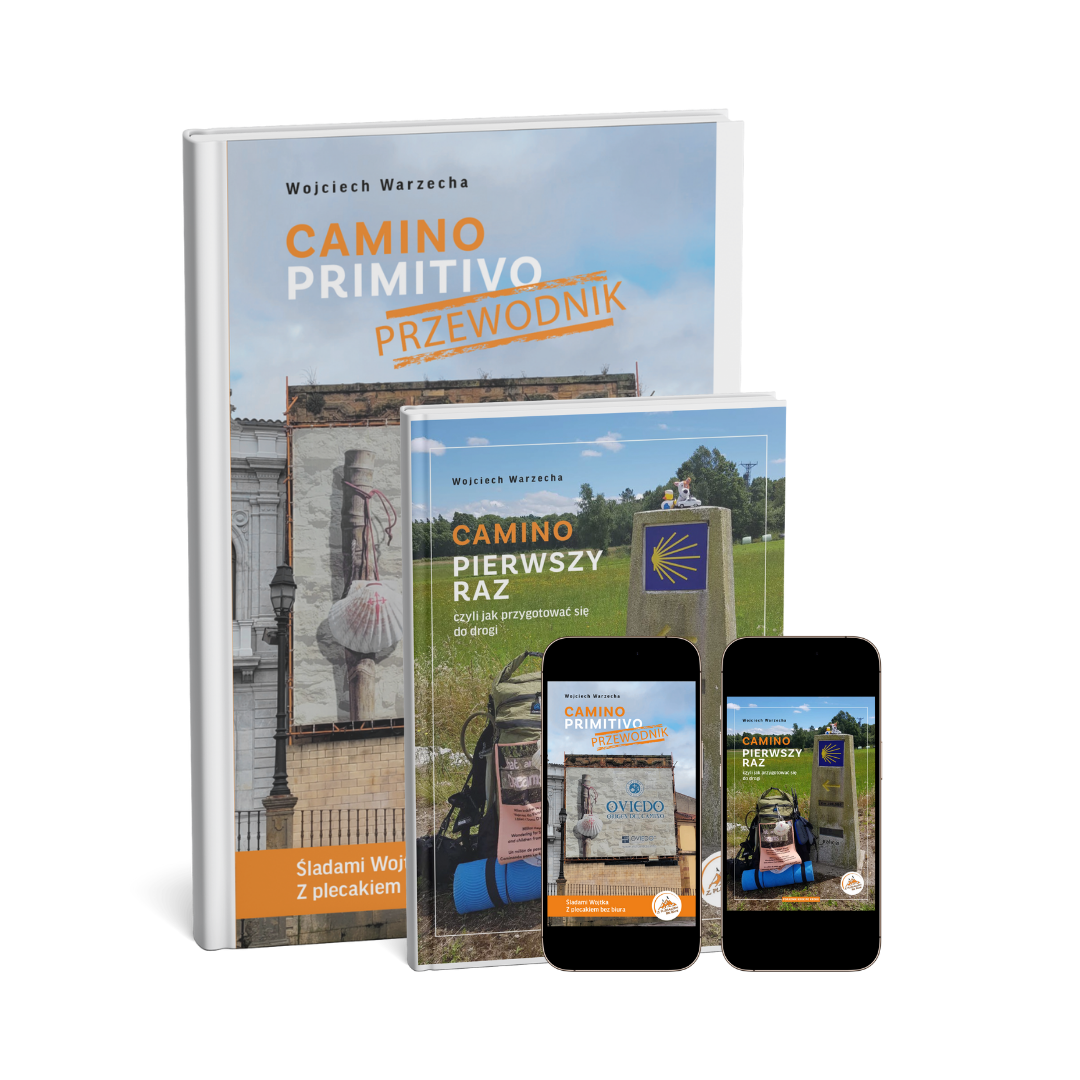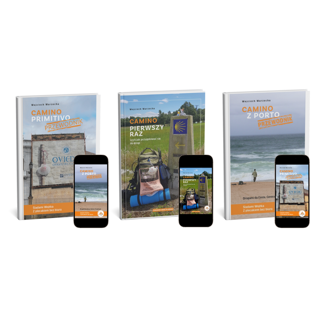 Więcej informacji o książce „Camino pierwszy raz, czyli jak przygotować się do drogi”, o „Przewodniku Camino Primitivo, śladami Wojtka Z plecakiem bez biura” oraz o „Przewodniku Camino z Porto, śladami Wojtka Z plecakiem bez biura”znajdziesz poniżej ⬇️